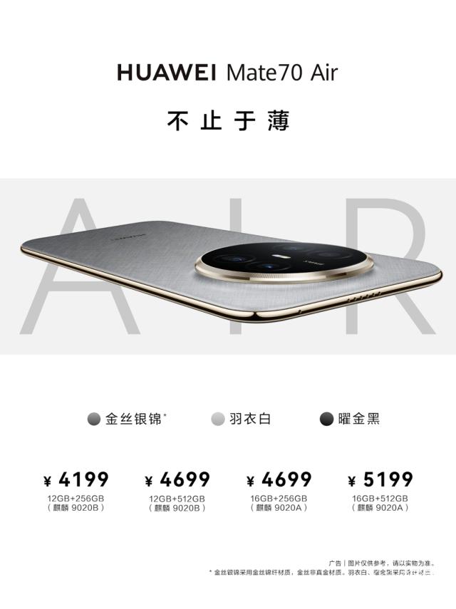 从 6.6mm 纤薄机身到 7 英寸沉浸大屏,从鸿蒙智慧生态到全场景实力突破,华为 Mate 70 Air 始终践行“不为轻薄而妥协”的核心理念,真正做到了“轻松拿捏,薄你满意”的产品初衷。它用全面实力证明,轻薄并非功能取舍的代价,而是一种更从容、更自由的生活方式。更令人期待的是,12 月 27 日,华为 Mate 70 Air 16GB 版本正式开售,为追求品质与体验的用户,带来更出色、更具性价比的大屏选择。